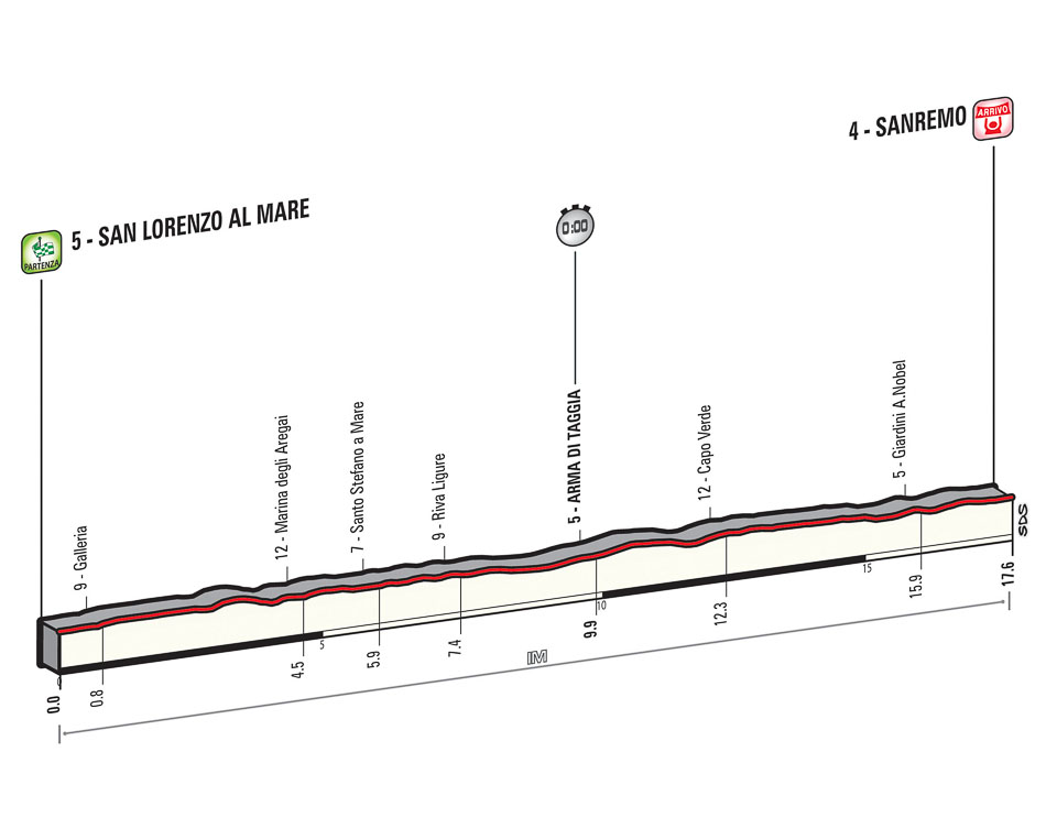 Comincerà con una cronometro a squadre di 17.6 km da San Lorenzo al Mare a Sanremo il Giro d’Italia 2015. Partenza dalla piccola cittadina in provincia di Imperia, caratteristica per il borgo antico, dove è situata la chiesetta barocca di Santa Maria Maddalena, e poi, su un tracciato ideato interamente sulla pista ciclabile “Riviera dei Fiori” che costeggia il lungomare, i ventidue team al via arriveranno nella città dei Fiori, sede d’arrivo della Classicissima di Primavera.