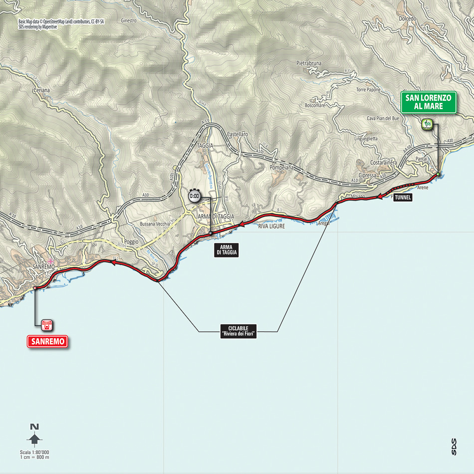 La San Lorenzo al Mare – Sanremo sarà la prima di quattro tappe collocate interamente in territorio ligure previste in quest’edizione. E sarà la quinta volta che la Liguria ospiterà la Grande Partenza del Giro. Era stata la città di Genova per tre volte a dare il via alla corsa: nel 1980 il trionfo finale dell’ultimo dei grandi, Bernard Hinault, nel 1991 quello di Miguel Indurain e nel 2004 quello a sorpresa di Damiano Cunego, che in quell’edizione partì con i gradi di gregario, ma finì, nonostante la giovanissima età, per scalzare dalla leadership il suo capitano Gilberto Simoni. Partenza da Sanremo nel 1987, quando il trionfo finale toccò a Stephen Roche.