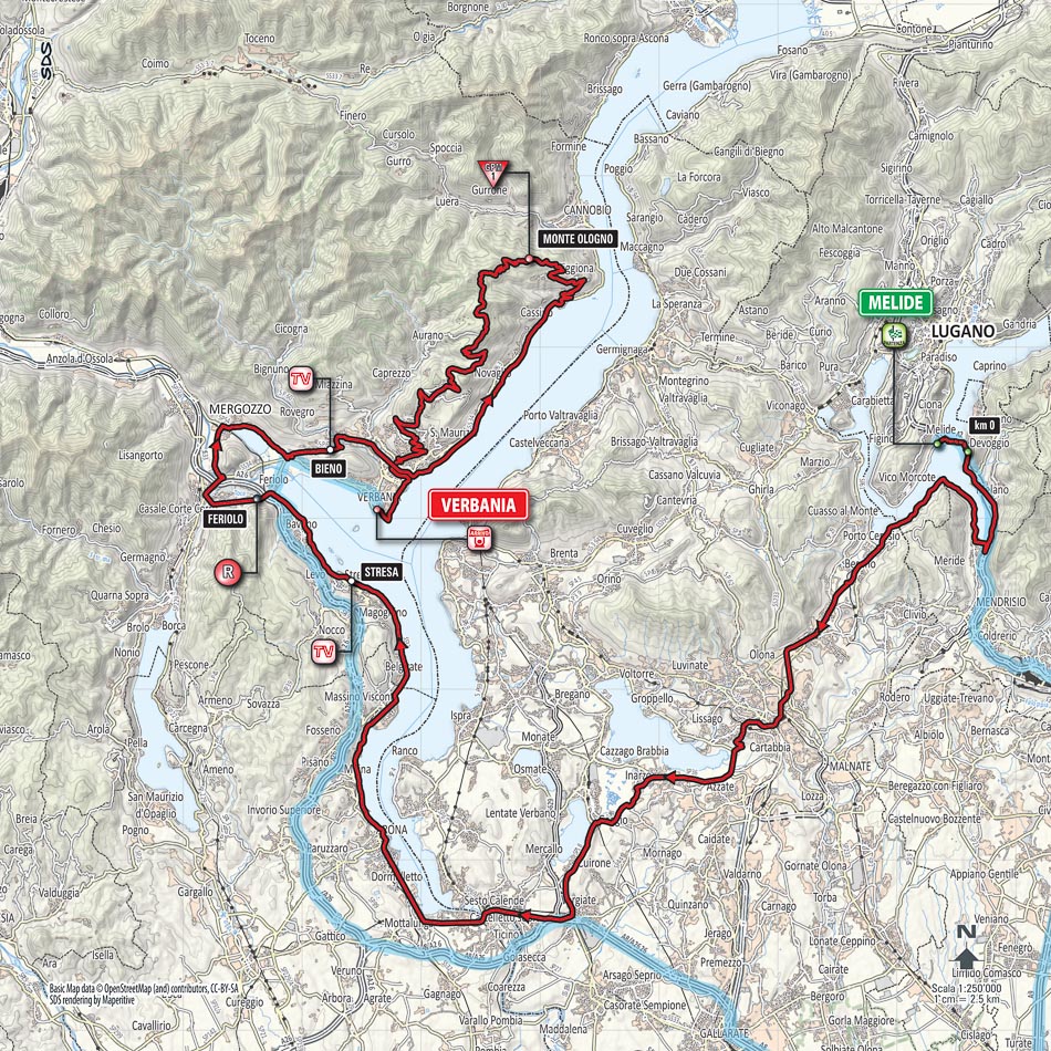 Il trittico che deciderà le sorti del Giro d’Italia 2015 si aprirà con la Melide-Verbania. Partenza dalla Svizzera e arrivo in Italia, in Piemonte, dopo 170 km caratterizzati da una sola, inedita ed impegnativa ascesa: è il Monte Ologno, un 1^ cat. di 10.4 km di lunghezza con pendenza media del 9% e punte del 13%. Un’asperità ostica, dunque, che giunge dopo tre quarti di tappa prevalentemente pianeggianti, contraddistinti dai soli due traguardi volanti posti a Stresa e Bieno.
