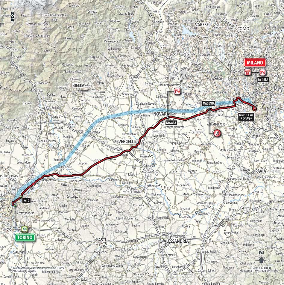 Da Torino a Milano, dalla capitale europea 2015 dello sport alla sede dell’Expo: una scelta strategica da parte degli organizzatori RCS per promuovere le due città italiane. Lungo i 178 km che condurranno i corridori nel capoluogo lombardo, dove comincia un circuito di 5.4 km da ripetere 7 volte, ci sarà tempo di brindare al vincitore e ad ogni singolo corridore che avrà terminato il Giro. Poi, sul piano della corsa, i due traguardi volanti a Novara e Milano e la volata finale decreterà per l’ultima volta l’uomo più veloce.