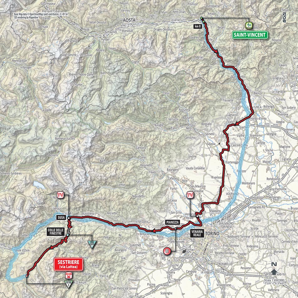 Il Giro d’Italia 2015 darà i suoi verdetti definitivi con la 20^ frazione, la Saint Vincent-Sestrière, di 199 km. Dopo la partenza alle 11.50 da Piazza del mercato di Saint Vincent, tutta la tappa funge da preparazione alla mitica ascesa del Colle delle Finestre, Cima Coppi 2015, con i suoi 1694 metri d’altitudine: il primo che vi transiterà sarà insignito del Premio Torriani. Solamente i due traguardi volanti di Venaria Reale e Susa da segnalare prima dell’ultimo spauracchio della Corsa Rosa 2015.