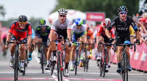 Si arriva così alla volata, in cui nessun team riesce ad organizzare un vero treno e si assiste dunque ad un finale piuttosto confuso, caratterizzato, tra l’altro, da un’altra caduta nelle retrovie del plotone. A partire con i gradi di favorito è ovviamente Andre Greipel (Lotto Soudal), che tuttavia lancia lo sprint presto e viene rimontato da un Elia Viviani che, posto alla sua ruota, sceglie perfettamente i tempi per battere tutti.