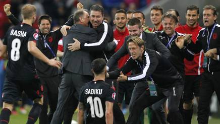 Terze, con punti tre: le Aquile rossonere li hanno conquistati tutti nella partita della vita giocata nell’impianto lionese; la zuccata di Armando Sadiku comunque andrà è stato il primo gol albanese nella storia degli Europei e ha portato la piccola nazionale dei Balcani, una delle tante matricole di Euro 2016, a giocarsi una insperatissima qualificazione da terza classificata nel girone.