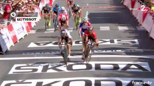 Peter Sagan sbarra la strada a Sonny Colbrelli sul traguardo della seconda tappa del Tour de France 2018: lo slovacco della Bora – Hansgrohe batte in volata a La Roche-sur-Yon il bresciano della Bahrain – Merida e va a prendersi la maglia gialla, complice una caduta che ha tagliato fuori dai giochi Fernando Gaviria (Quick Step Floors).