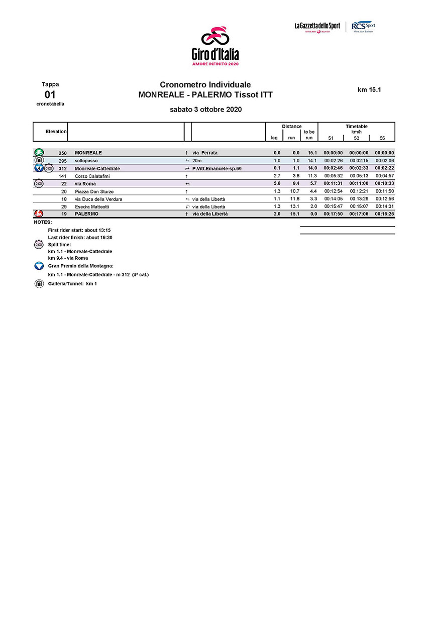 L’edizione numero 103 della Corsa Rosa parte dalla Sicilia con una prova contro il tempo che parte dalla città famosa, tra le altre cose, per lo splendido Duomo Normanno, fatto costruire da Guglielmo II a partire dal 1174. Sarà la nona partenza del Giro dalla Sicilia: la prima fu nel 1930 a Messina, l’ultima nel 2008 proprio a Palermo.