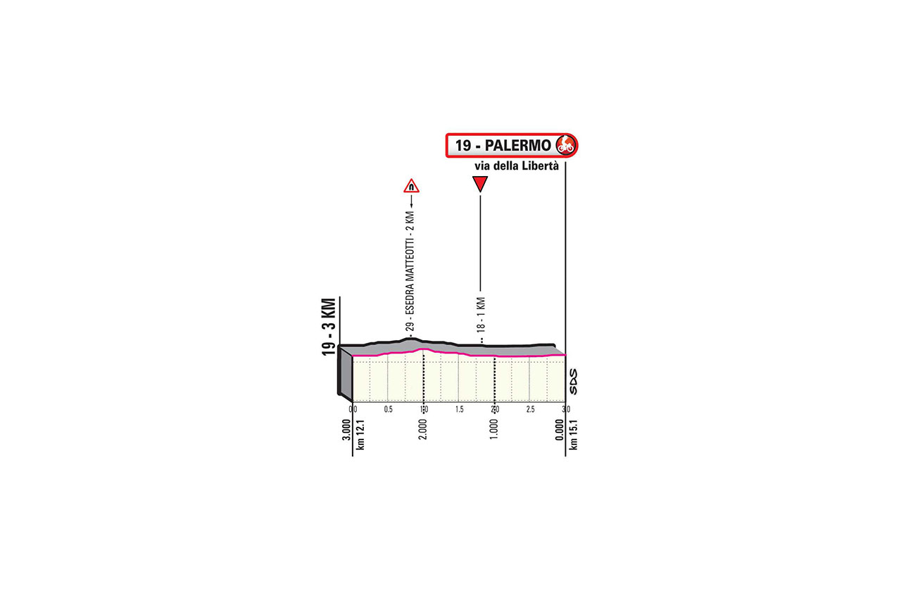 Si tratta di una prova per specialisti, che parte con una rampa di un chilometro in salita, ma poi scende e spiana fino ad arrivare in Via della Libertà a Palermo.