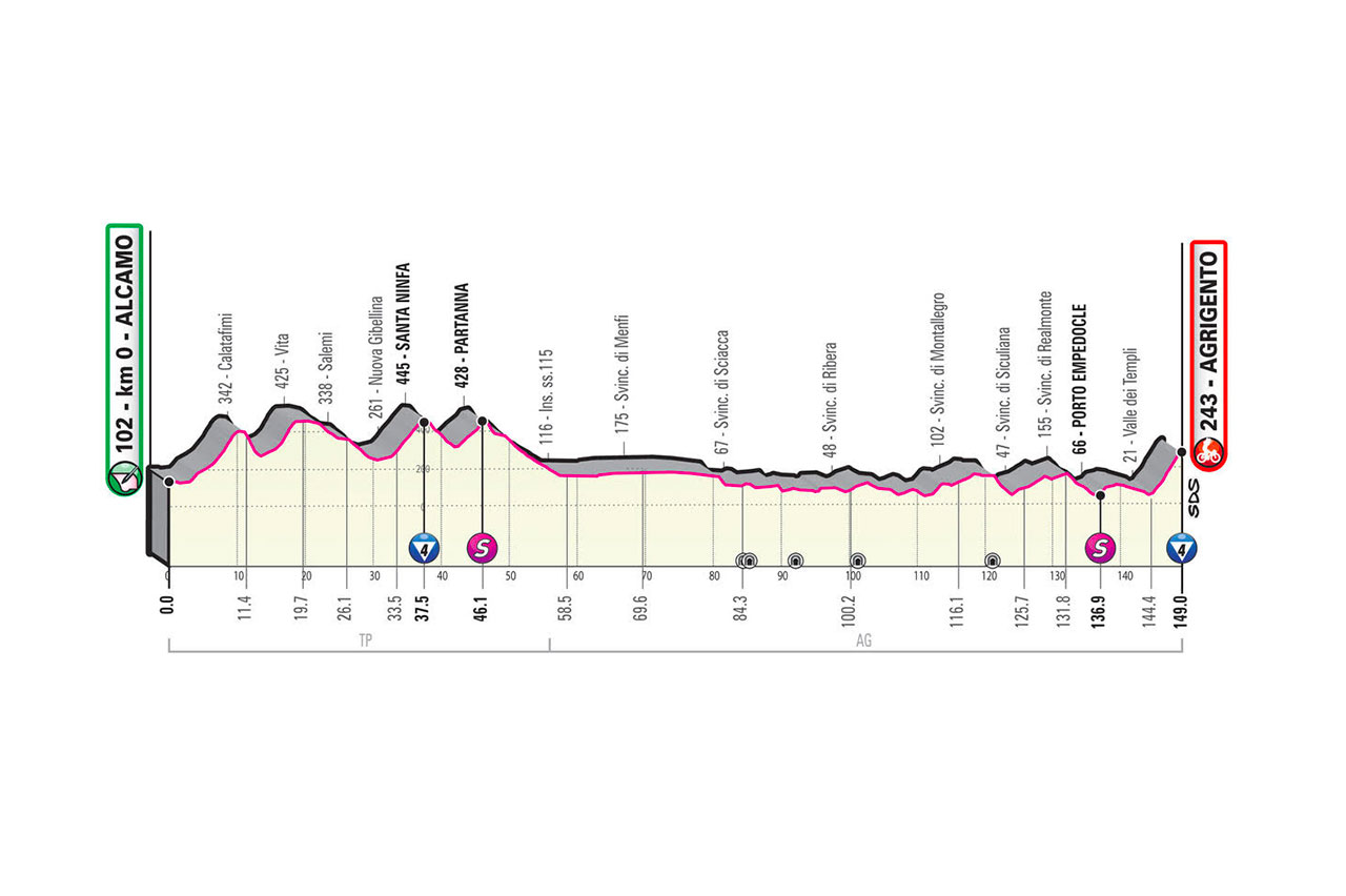 Ora la Corsa Rosa è pronta per la prima frazione in linea, la tappa numero 2: si va da Alcamo ad Agrigento (149 km) e c’è subito il primo arrivo in salita.