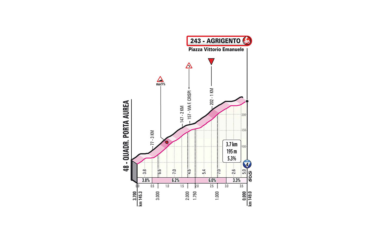 Non si tratta di ascese che chiameranno in causa i contendenti alla maglia rosa di Milano – per quelli bisognerà attendere il giorno successivo con l’arrivo dell’Etna – ma tanto basta per rendere scoppiettante un arrivo che potrebbe aprirsi a tante soluzioni.