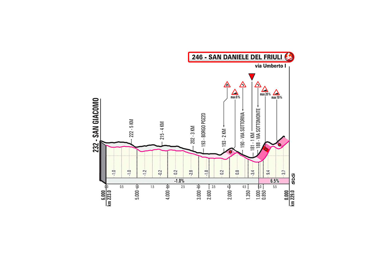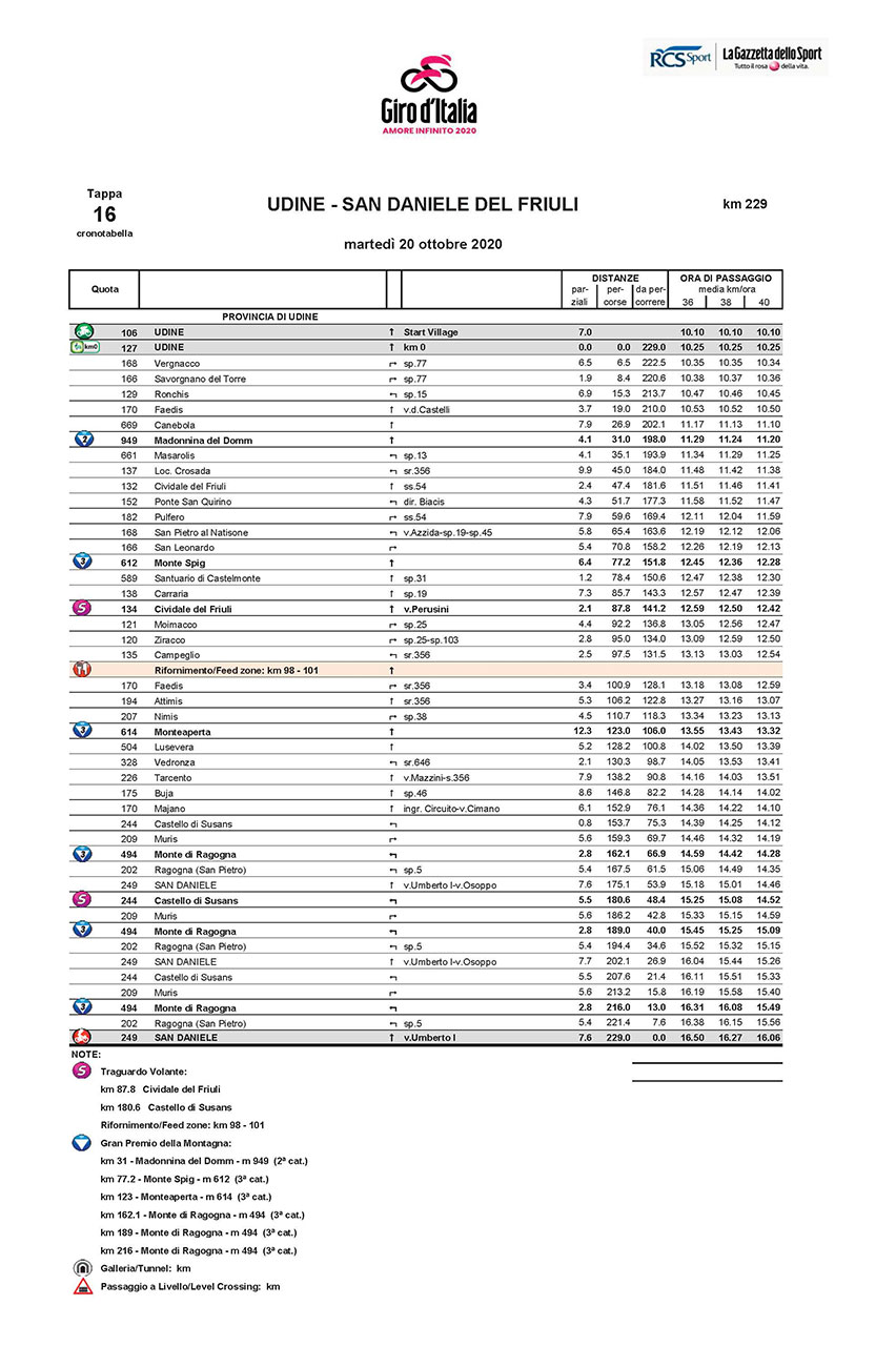 Si comincia con la 16^ tappa, da Udine a San Daniele del Friuli, di ben 229 km. La Corsa Rosa è già approdata nella regione più a nord-est d’Italia con l’arrivo di Piancavallo che ha dato una fisionomia ben precisa alla classifica generale e ha lasciato intendere come Wilco Kelderman (Sunweb), attualmente secondo in graduatoria, sia l’uomo da battere, avendo dalla sua soltanto 15″ da recuperare sulla maglia rosa Joao Almeida (Deceuninck Quick Step) e potendo contare su un’esperienza maggiore.